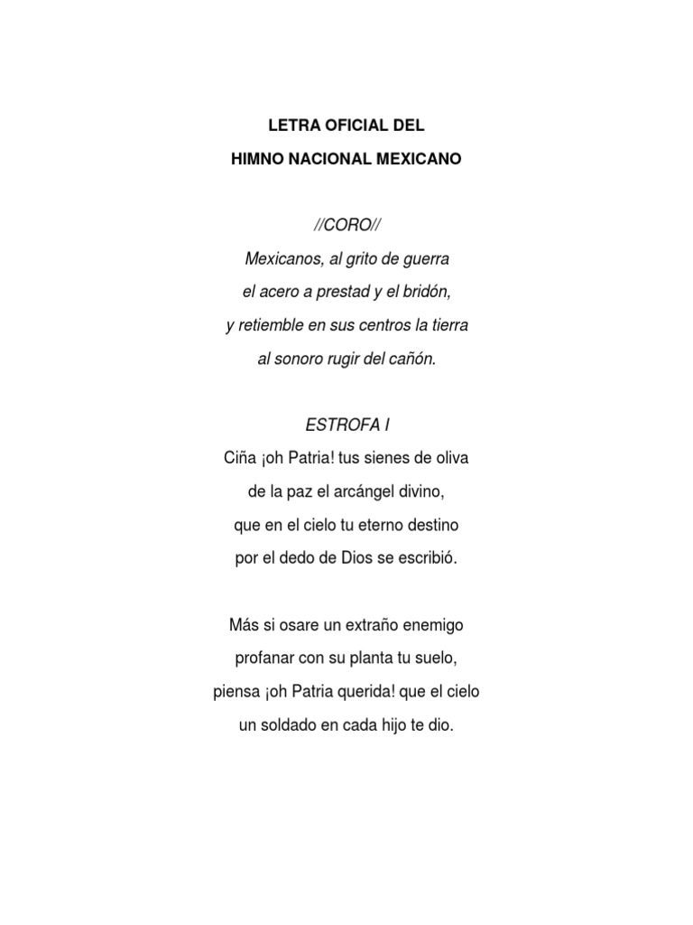 Letra Del Himno Nacional Mexicano Completo Entretenimiento General from imgv2-1-f.scribdassets.com Himno nacional mexicano — página inicial de la partitura del himno nac … wikipedia español. Himno nacional mexicano by francisco gonzález bocanegra, translated from spanish by wikipedia and wikisource. Himno nacional mexicano versiones, himno nacional mexicano y marchas, orgullo mexicano. Información, fotos y videos en milenio. El himno nacional mexicano se canta con honor todos los lunes en las escuelas y es en el mes de septiembre que en méxico esta es la letra oficial del himno nacional: El himno nacional mexicano fue escrito por francisco gonzález bocanegra y música de jaime nunó. Himno nacional mexicano música y voz de la patria. Mexicanos, al grito de guerra el acero aprestad y el bridón;